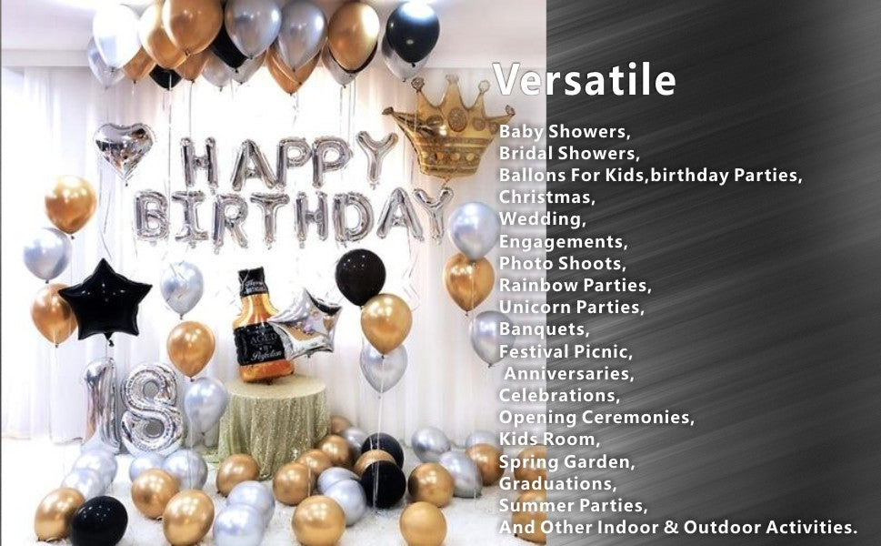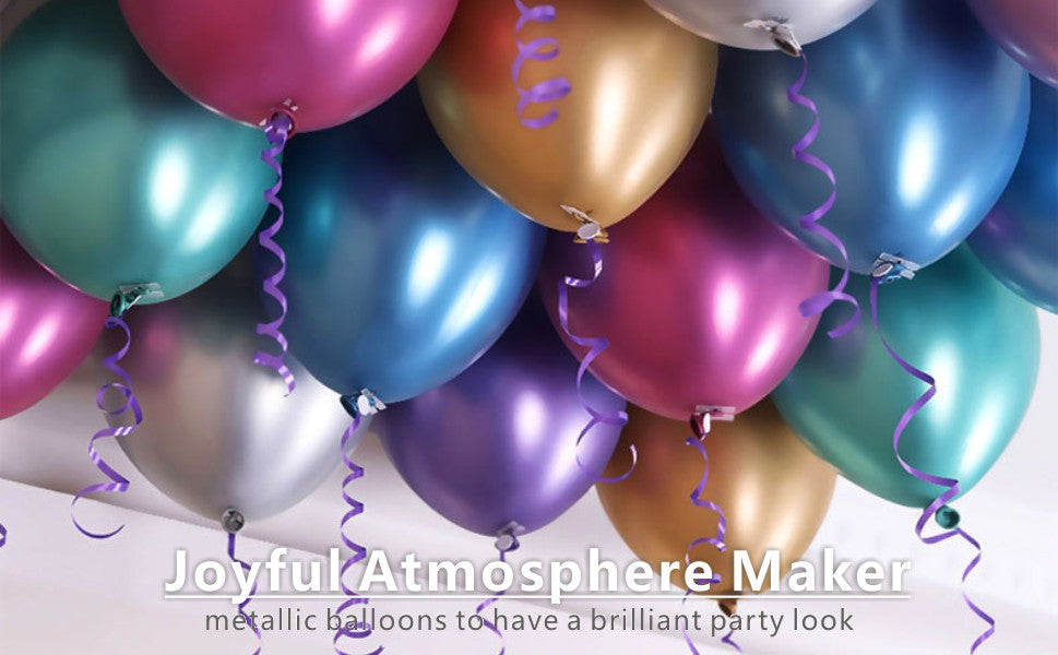 - PERFECT PARTY DECORATION: The metallic color of latex balloons are new, unique and trendy style which are perfect for birthday, commencement, bridal, wedding, holiday, business and other friends/family parties